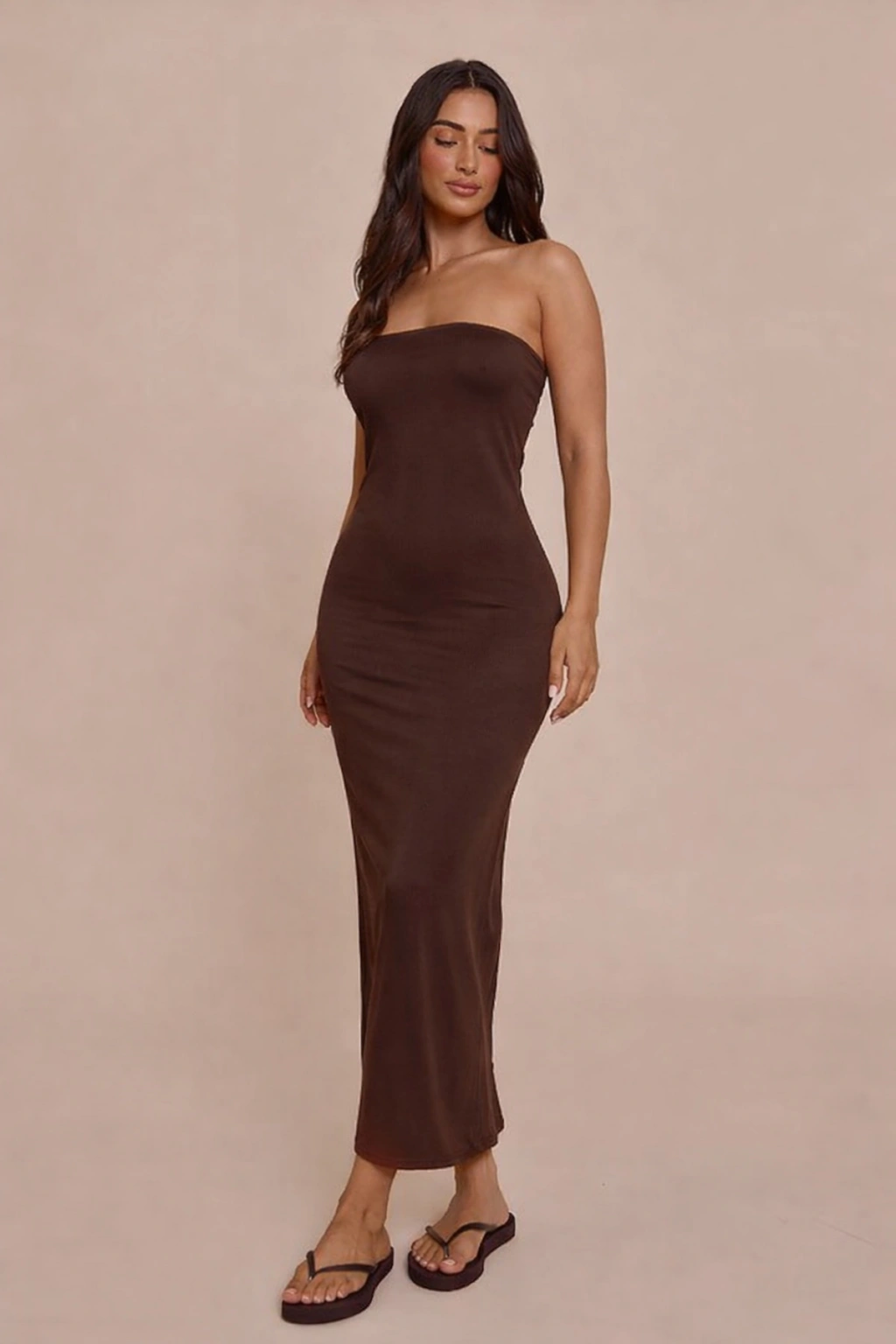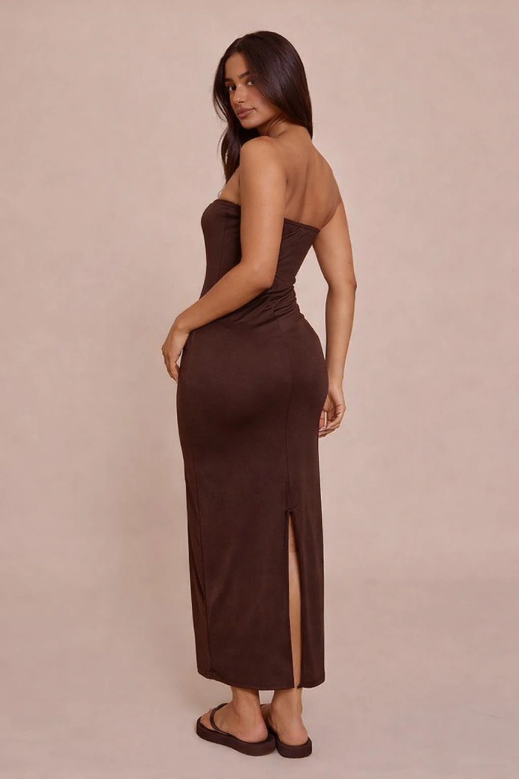Askısız Bodycon Straplez Maxi Elbise