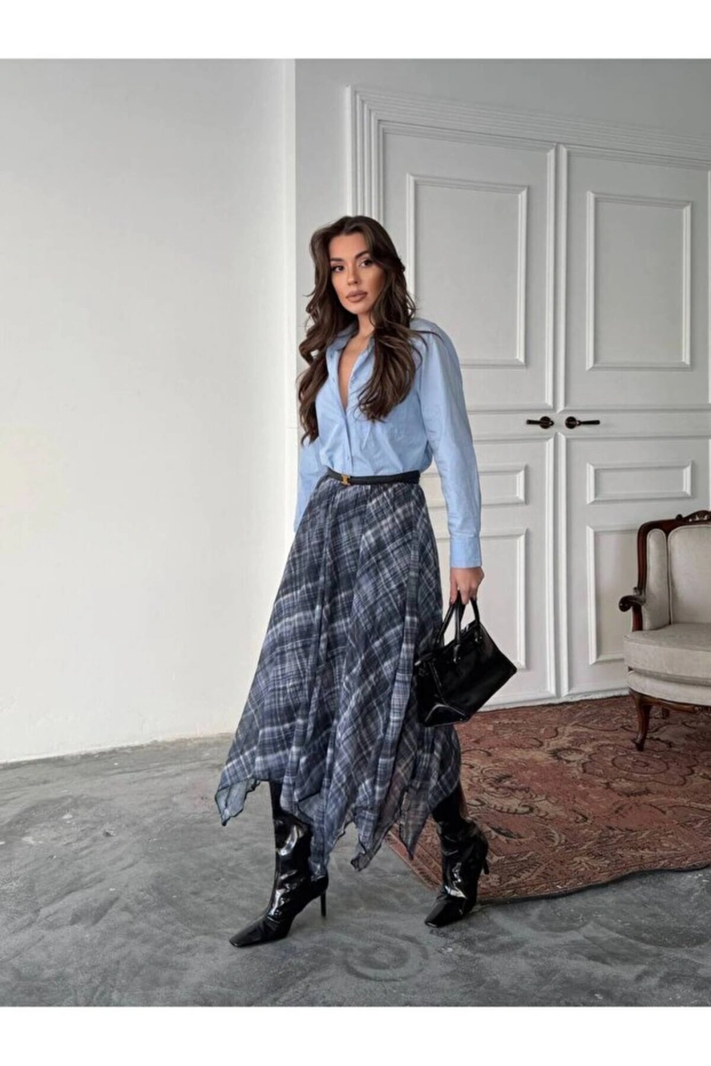 - Şık ve modern bir görünüm için ekose desenli, asimetrik kesim midi etek.; - Astarlı yapısı sayesinde rahat bir kullanım sunar ve iç göstermez.; - Tüm sezonlarda tercih edilebilecek, çok yönlü bir parça.; - Lastikli bel tasarımı ile konforlu bir oturuş sağlar.; - Bağlama/bağcık kapama şekli ile kişisel tarzınıza göre ayarlama imkanı sunar.; - Cepsiz tasarımıyla sade ve şık bir görünüm elde edilir.; - Orta kalınlıkta dokuma kumaşı, mevsim geçişlerinde ideal bir seçimdir.; - Trend ortamlar için uygun, basic koleksiyonun parçası olarak günlük kullanım için idealdir.;