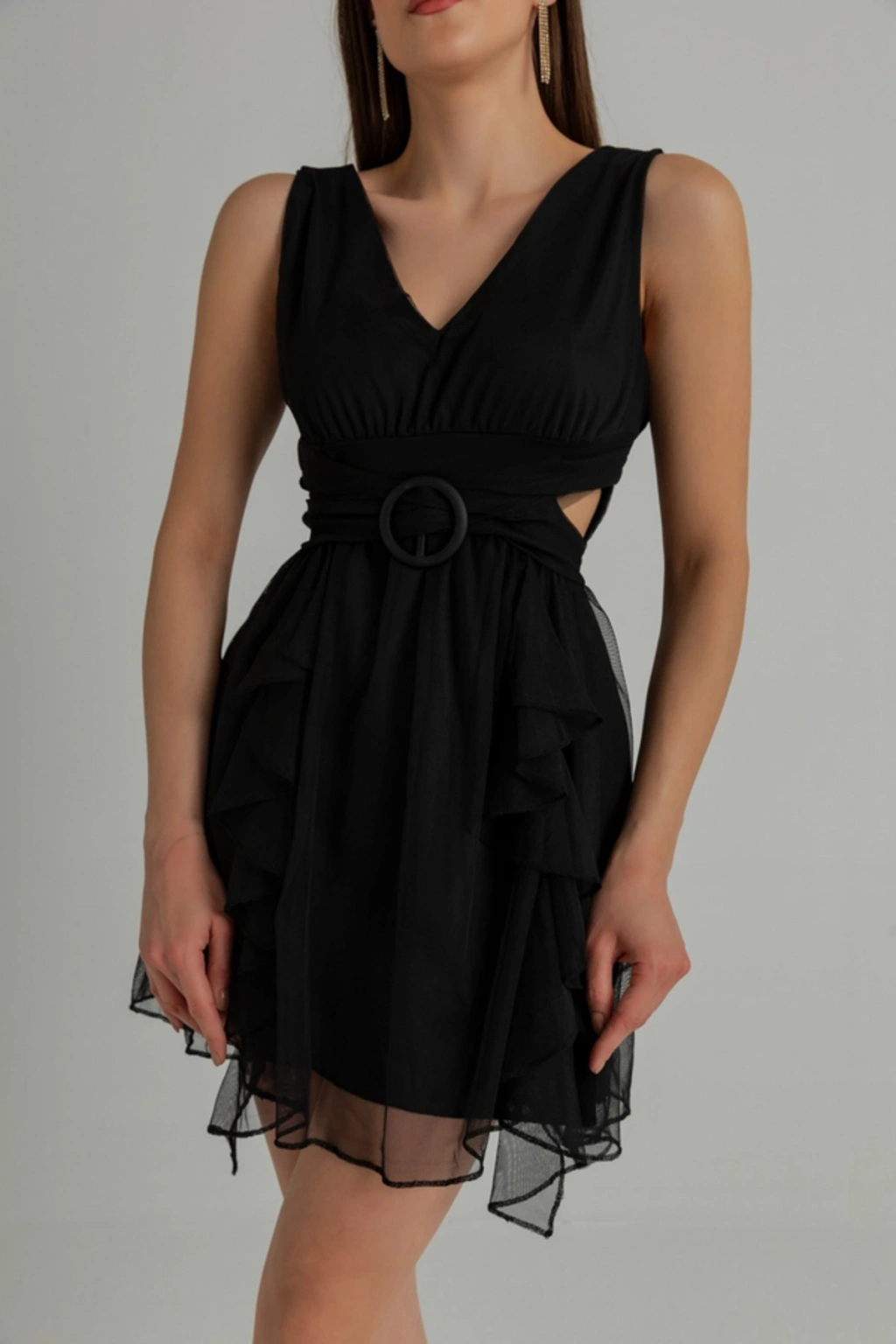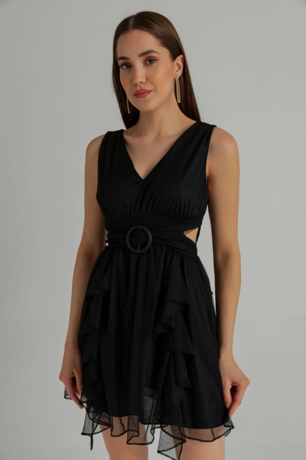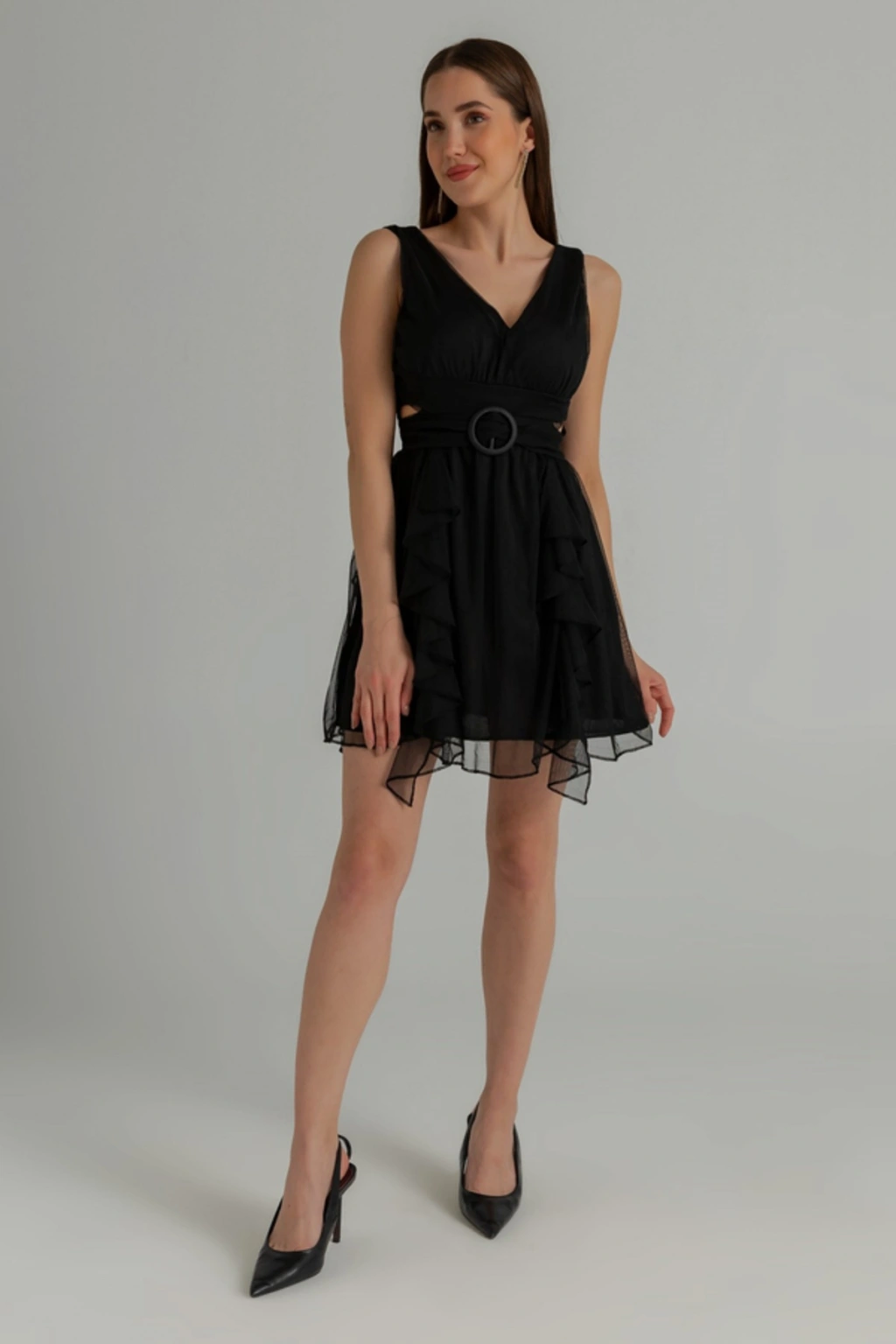 - Uzun kollu tasarımı ile mevsim geçişlerinde de şıklığınızdan ödün vermezsiniz.; - Orta kalınlıkta tül kumaşı, hem rahatlık hem de zarif bir görünüm sunar.; - Gündüzden geceye kolayca uyum sağlayabilen bu elbise, her ortamda dikkat çekmenizi sağlar.; - Baskısız ve cepsiz tasarımı ile sade ve şık bir görünüm elde edersiniz.; - V yaka detayı ile feminen çizgilerinizi ön plana çıkarır.; - Astarsız yapısı sayesinde hafif ve nefes alabilen bir kullanım sunar.; - Kemersiz tasarım, vücut hatlarınıza mükemmel uyum sağlar ve zarif bir siluet oluşturur.; - Tül materyali, hafifliği ve şeffaf dokusuyla sofistike bir hava katar.; - Tüm sezonlar için uygun olan bu elbise, gardırobunuzun vazgeçilmez parçası olacak.; - Kapsız yapısı ile doğal güzelliğinizi ön plana çıkarırken, asimetrik kesimi modern bir dokunuş katıyor.; - Kuşaklı kapama şekli sayesinde kişisel zevkinize göre ayarlama yapabilirsiniz.; - Düz dokuma tipi ve düz deseniyle sadelikten yana olanların tercihi olacak.; - A kesim ek özelliği ile vücut hatlarınıza uyum sağlarken konforlu bir deneyim sunar.; - Eteği fırfırlı siluetiyle hareketli ve dinamik bir görünüm kazandırır.; - Yetişkin yaş grubuna hitap eden bu parça, kadınların gard