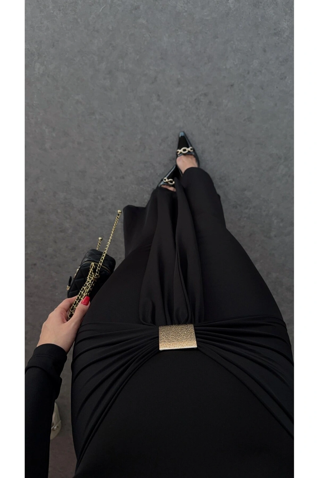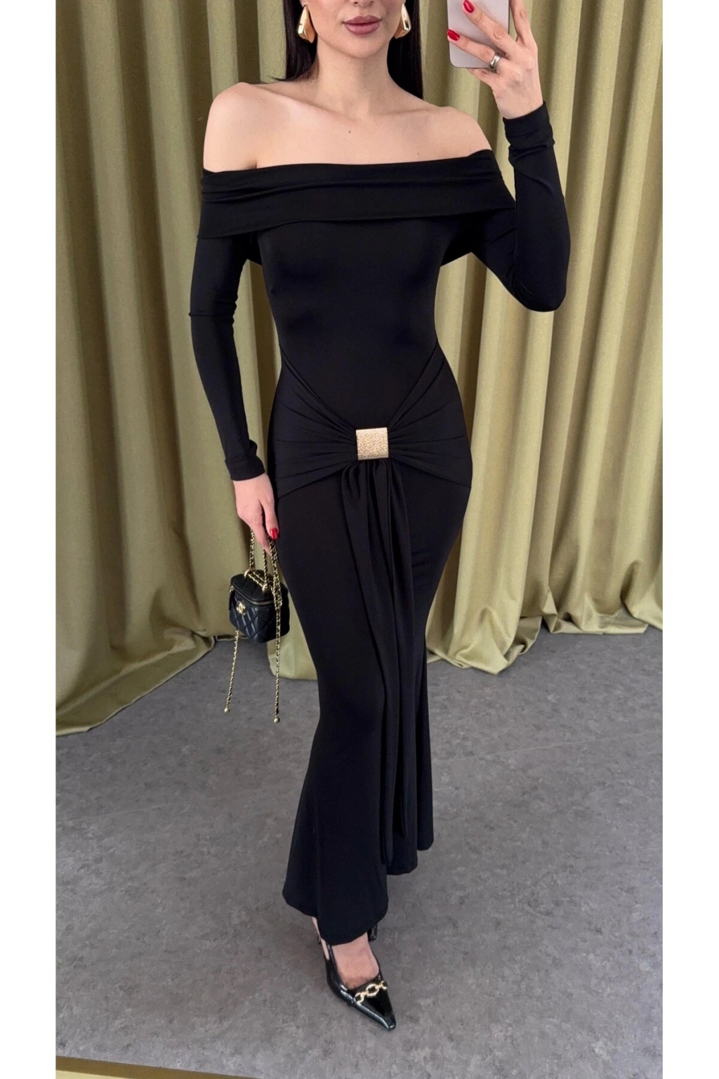 - Uzun kollu tasarımı ile mevsim geçişlerinde ve serin havalarda rahatlıkla tercih edilebilir.; - Straplez yaka detayı, feminen bir görünüm kazandırırken omuzları serbest bırakır.; - Baskısız düz deseniyle sade ve şık bir stil sunar; her türlü aksesuarla kolayca kombinlenebilir.; - Orta kalınlıkta kumaşı, yıl boyunca ideal bir kullanım sağlar.; - Tokalı detaylar, elbisenin zarifliğini ön plana çıkarırken aynı zamanda pratik kullanım sunar.; - Vücudu saran slim kalıbı ile feminen hatları ön plana çıkartır ve şık bir siluet oluşturur.; - Astarsız yapısı sayesinde hafif ve rahat bir kullanım deneyimi sunar.; - Örgü dokuma tipi, esnek yapısıyla gün boyu konforlu bir giyim deneyimi sağlar.; - Trendy tasarımıyla günlük giyimden özel günlere kadar geniş kullanım imkanı sunar.; - Pamuk polyester karışımından üretilmiş materyali, dayanıklılığı ve konforu bir arada sunar.; - Yetişkin yaş grubuna hitap eden bu ürün, kadınların gard