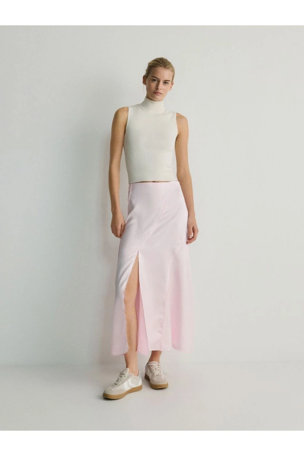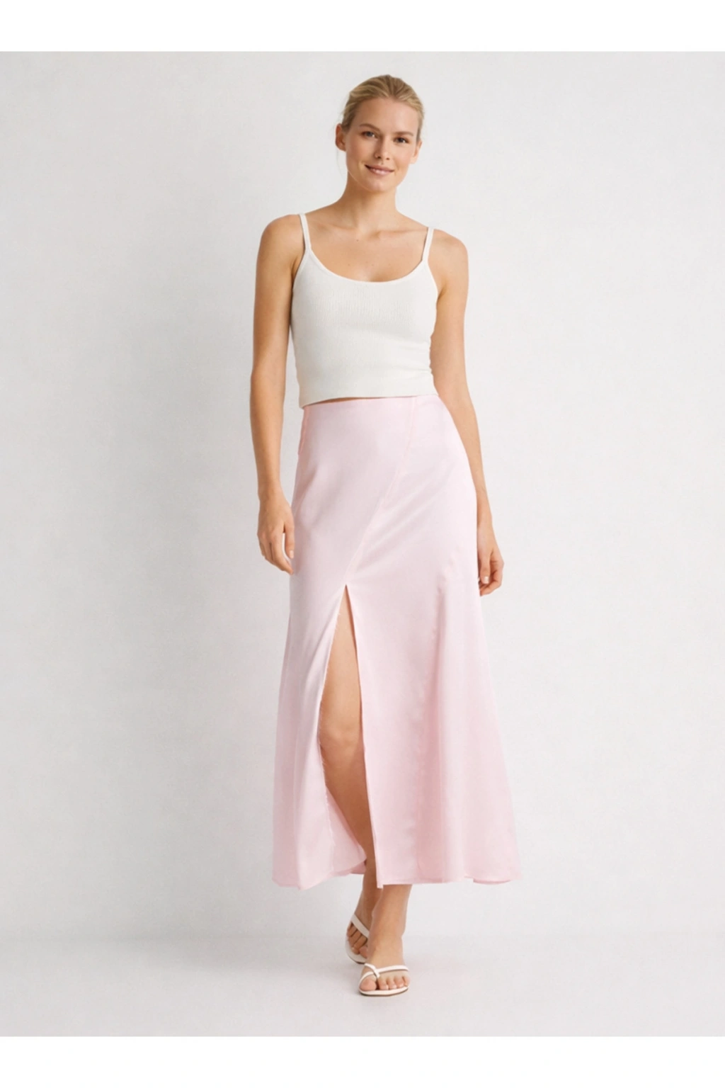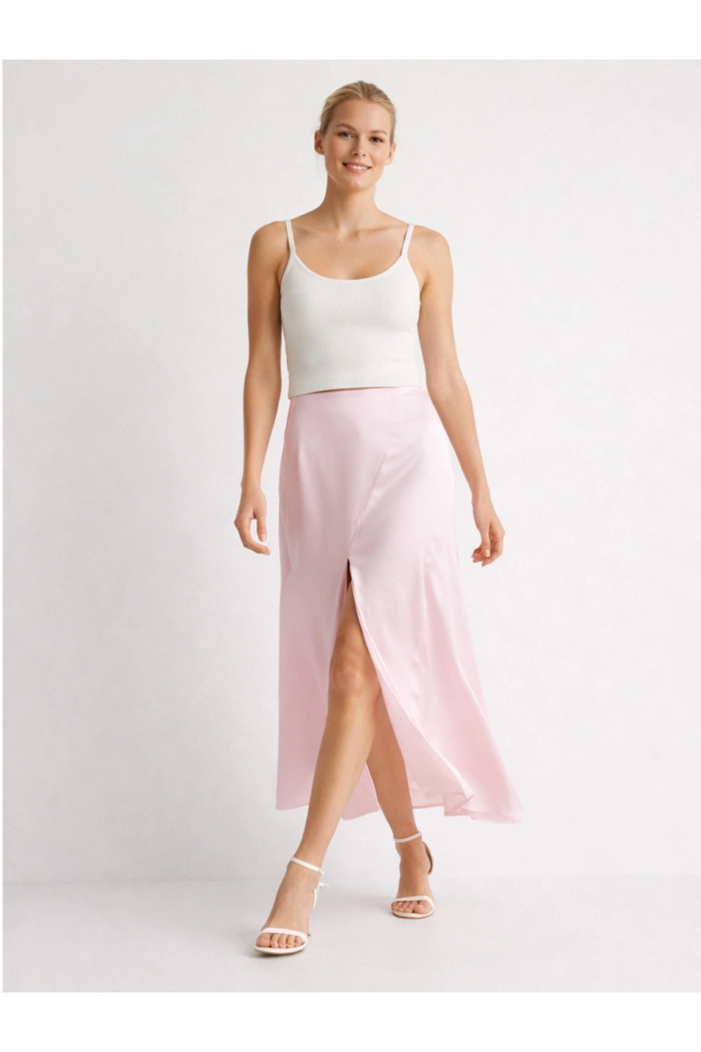 - Yüksek bel tasarımı ile vücut hatlarını zarifçe sarar ve şık bir siluet oluşturur. - Uzun boy maxi kesimi, feminen bir görünüm sunarken rahat hareket etme olanağı sağlar. - Yırtmaç detayı ile modern ve dinamik bir hava katar, bacaklarınızı vurgular. - Düz dokuma kumaşı, etek formunu korurken şık bir duruş sergiler. - Saten kumaşın zarif parlaklığı, her ortamda göz alıcı bir stil yaratmanızı sağlar. - İnce yapısı sayesinde mevsim geçişlerinde ideal bir tercih olur. - Tüm sezonlar için uygun olan bu etek, gardırobunuzun vazgeçilmez parçası haline gelir. - Yarım pat fermuar kapama şekli pratik kullanım sunarken, kemersiz tasarımı modern bir dokunuş katmaktadır. - Astarsız yapısıyla hafif ve konforlu bir kullanım sağlar. - İç göstermeyen yapısı sayesinde rahatlıkla tercih edilebilir. - Düz deseniyle kolayca kombinlenebilir ve her tür aksesuarla uyum sağlar. - Tall koleksiyonuna ait olmasıyla uzun boylular için özel olarak tasarlanmıştır. - Türkiye'de üretilmiş olup, yerel üretim kalitesini yansıtır.