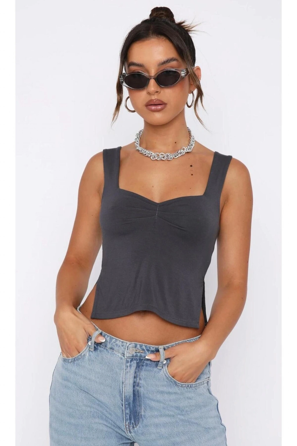 Kare Yaka Geniş Askılı Basic Bluz