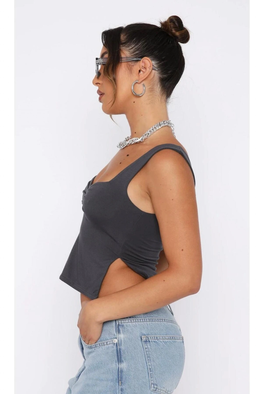 Tek Omuz Detaylı Büzgülü Bluz ( Crop Değildir )