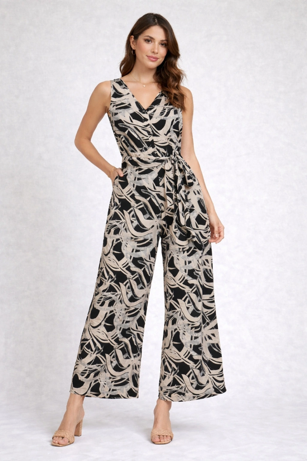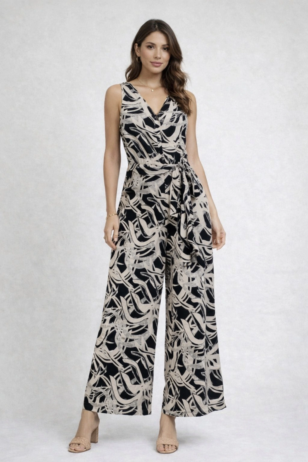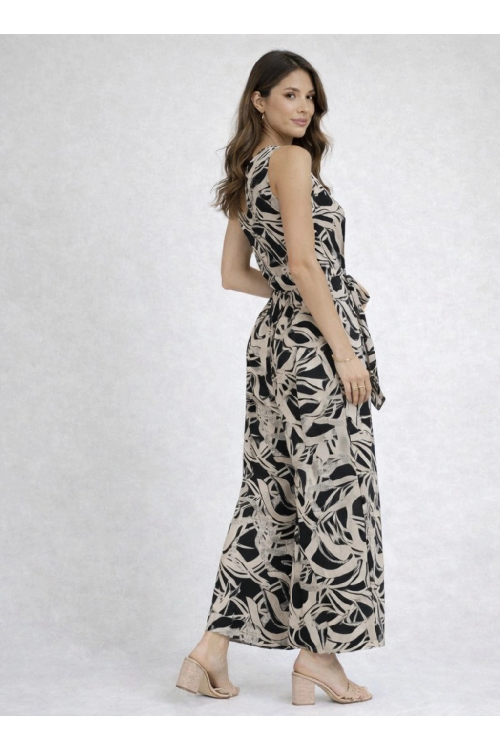 - Tüm sezonlar için uygun, siyah bej desenli kadın tulum.; - Kolsuz tasarımı ile yaz aylarında serinlik ve rahatlık sunar.; - Cool & Comfort persona'ya sahip, günlük kullanıma uygun düz kesim.; - Bol paça tasarımı, hareket özgürlüğü sağlar ve şık bir görünüm kazandırır.; - %100 pamuk materyali ile cildinize nefes aldırır ve konforlu bir deneyim sunar.; - Düğmeli kapama şekliyle kolay giyilip çıkarılabilir ve pratik kullanım sağlar.; - Viskon süprem dokuma tipi, yumuşak dokusuyla gün boyu rahatlık hissi verir.; - Belden kuşaklı tasarımı, vücut hatlarınıza göre ayarlanabilir ve şık bir siluet oluşturur.; - Desenli ek özellik, tulumunuza modern ve trend bir hava katar.; - Basic silueti ile zamansız bir tarz sunar ve her ortama uyum sağlar.; - Kapsız yapısıyla hafif ve ferah bir kullanım imkanı tanır.; - Cepsiz tasarımı, minimalist ve sade bir görünüm sağlar.; - Kutu durumu olmadığı için doğrudan kullanımınıza hazır şekilde teslim edilir.; - Düğmeli ürün detayı, şık ve zarif bir dokunuş katarken kolayca açılıp kapanabilmesini sağlar.; - V yaka tipi ile boynunuzu zarifçe çerçeveler ve feminen bir hava katar.; - Zarif koleksiyon parçası olarak dikkat çekici bir stil oluşturmanızı sağlar.; - Regular kalıp, rahat bir oturuş sunarken vücut hatlarınızı nazikçe sarar.; - Uzun boyu ile hem şık hem de modern bir görünüm sunar.; - Yetişkin yaş grubu için tasarlanmıştır, her yaşa uygun zarifliğiyle öne çıkar.; - Dokuma kumaş tipi, dayanıklılığı ve kaliteli görünümü ile uzun süreli kullanım vaat eder.; - Kadın / Kız cinsiyeti için özel olarak tasarlanmıştır, her gardıropta yerini almayı hak eder.;