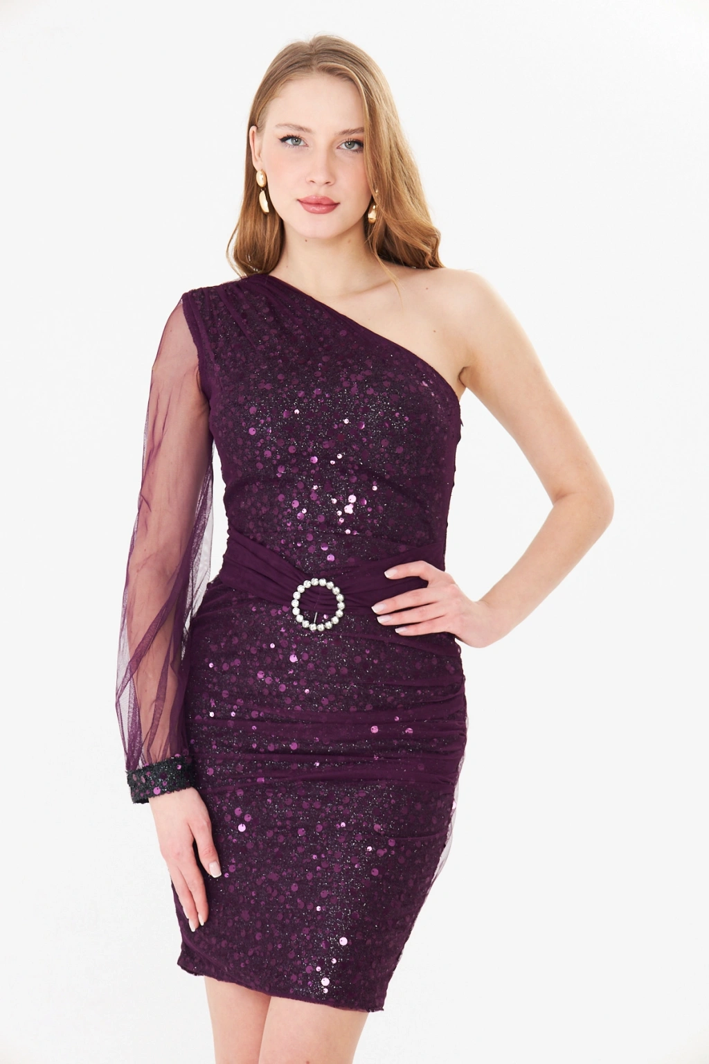 - Tek omuz tasarımı ile modern ve şık bir görünüm sunar.; - Tül kol detayları, zarif ve feminen bir hava katar.; - Diz üstü boyu, bacakları ön plana çıkararak zarif bir siluet oluşturur.; - Puantiyeli deseniyle klasik ve zamansız bir stil sunar.; - Vücudu saran slim kalıbı, feminen hatları ön plana çıkarır.; - Asimetrik yaka tipi, farklı ve dikkat çekici bir detaydır.; - Özel gün davetleri ve düğünler için idealdir.; - Yarım pat fermuar kapama şekli, kolay giyilip çıkarılmasını sağlar.; - Astarlı yapısı sayesinde rahatlık ve konfor sunar.; - Tüm sezonlar için uygun tasarımıyla her mevsim tercih edilebilir.; - Slim silueti ile modern ve şık bir görünüm sağlar.; - Türkiye'de üretilmiştir.;