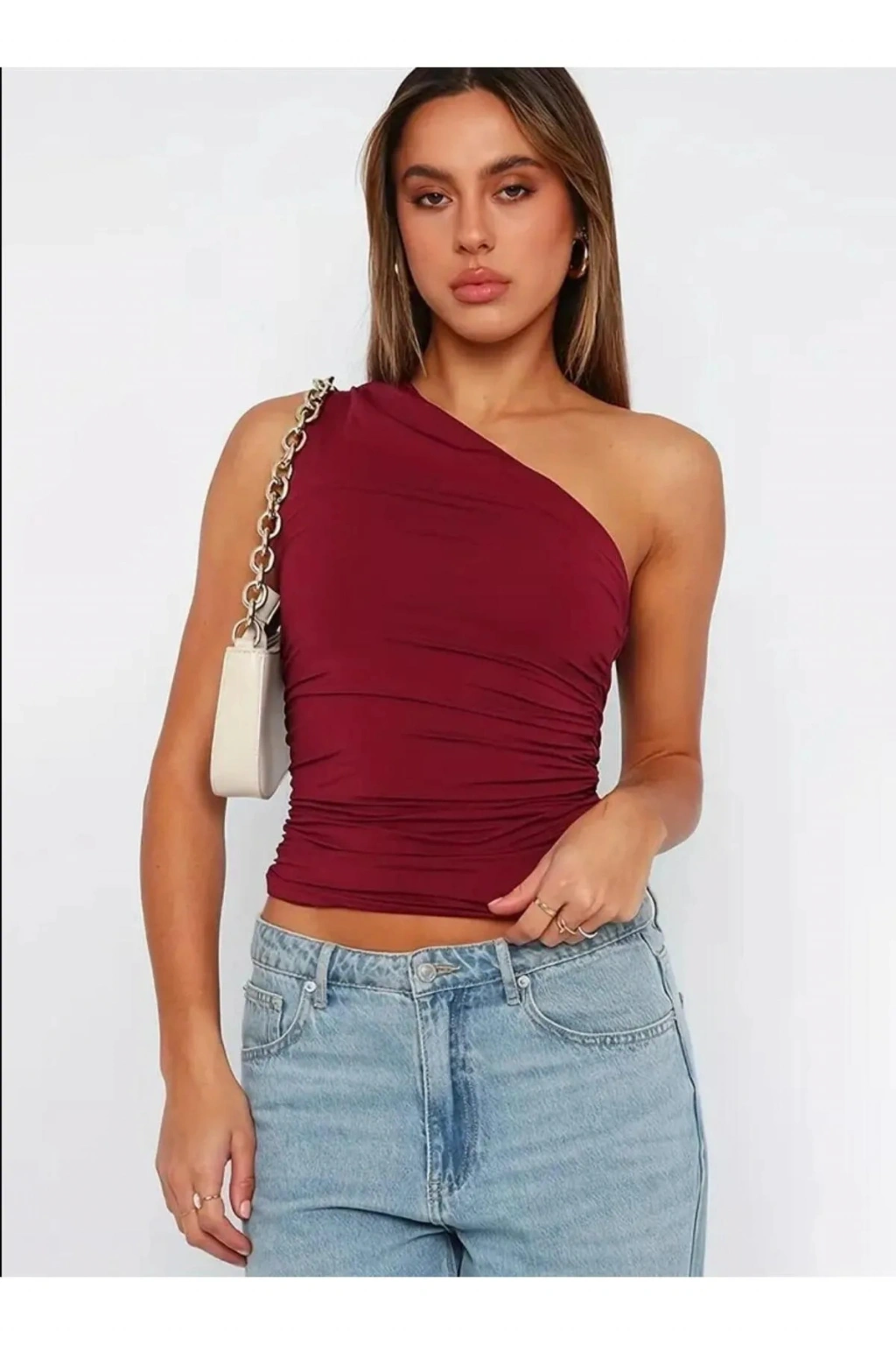 - Tek omuz detaylı tasarımı ile feminen bir görünüm sunar.; - Büzgü özelliği sayesinde vücut hatlarınıza mükemmel uyum sağlar.; - Orta kalınlıkta kumaşı, mevsim geçişlerinde ideal konforu sunar.; - Astar gerektirmeyen yapısıyla pratik kullanım imkanı tanır.; - Basic koleksiyonun sadeliğiyle her gardıropta yerini alabilir.; - Her sezon tercih edilebilen zamansız bir parça olarak öne çıkar.; - Sexy persona'sıyla dikkat çekici bir stil oluşturmanızı sağlar.; - 30 derecede elde ya da makinede yıkama kolaylığı sunarak bakımı pratiktir.; - Kemersiz tasarımı ile rahatlıkla kombinlenebilir; ekstra aksesuar ihtiyacını ortadan kaldırır.; - Düz kesimi sayesinde farklı alt giyim parçalarıyla kolayca eşleştirilebilir.; - Tüylenmeyen kumaşı uzun süreli kullanım için idealdir.; - Kapsız yapısıyla modern ve şık bir siluet çizer.; - Organik malzemeden üretilmiş olması sürdürülebilir moda anlayışına katkıda bulunur.; - Paket içeriğindeki tek parça ile minimalist yaklaşımı benimserken stil sahibi olursunuz.; - Kapamasız oluşuyla serbest hareket etme özgürlüğü verir.; - Cepsiz tasarım cep ihtiyaçlarını minimuma indirgerken şıklığından ödün vermez.; - Baskısız deseniyle sade güzellikten yanadır; zamansız tarzınızın vazgeçilmezi haline gelir.; -Kadın/kız cinsiyetine hitap eden bu bluz, her yaş grubundaki kadınların gardrobunda yer bulmayı başarır.; -Slim kalıbı vücut hatlarınıza mükemmel oturarak zarif bir duruş sergiler.; -Normal boy uzunluğuyla günlük kullanım için idealdir; hem gündüz hem de gece kombinlerinizde rahatlıkla tercih edebilirsiniz.; -Tek kol tipi modern çizgiler taşıyan bu bluz, omzu açık detaylarıyla sofistike bir hava katıyor.; -Dalgıç/scuba dokuma tipi dayanıklılığı arttırarak ürünün formunu korumasına yardımcı olur.; -Asimetrik yaka detayı ile geleneksel formlardan koparak özgün bir stil sunar.; -Gündüzden geceye geçişte rahatlıkla kullanabileceğiniz çok yönlülükteki bu bluz, her ortamda dikkatleri üzerine toplar.;