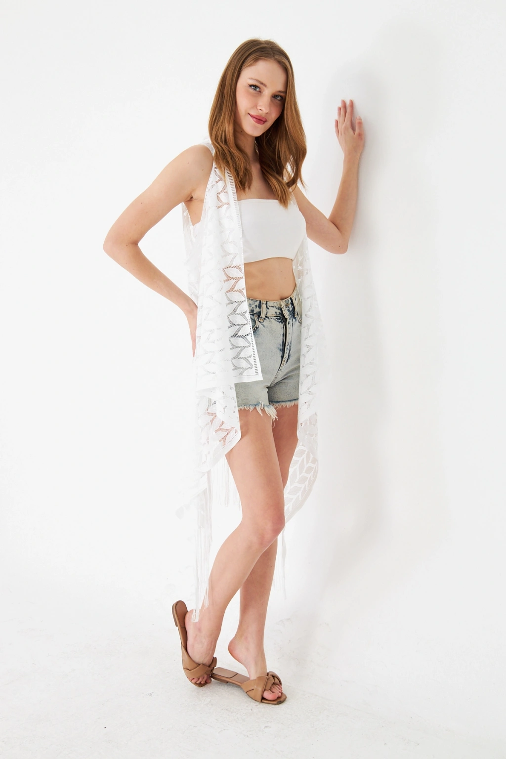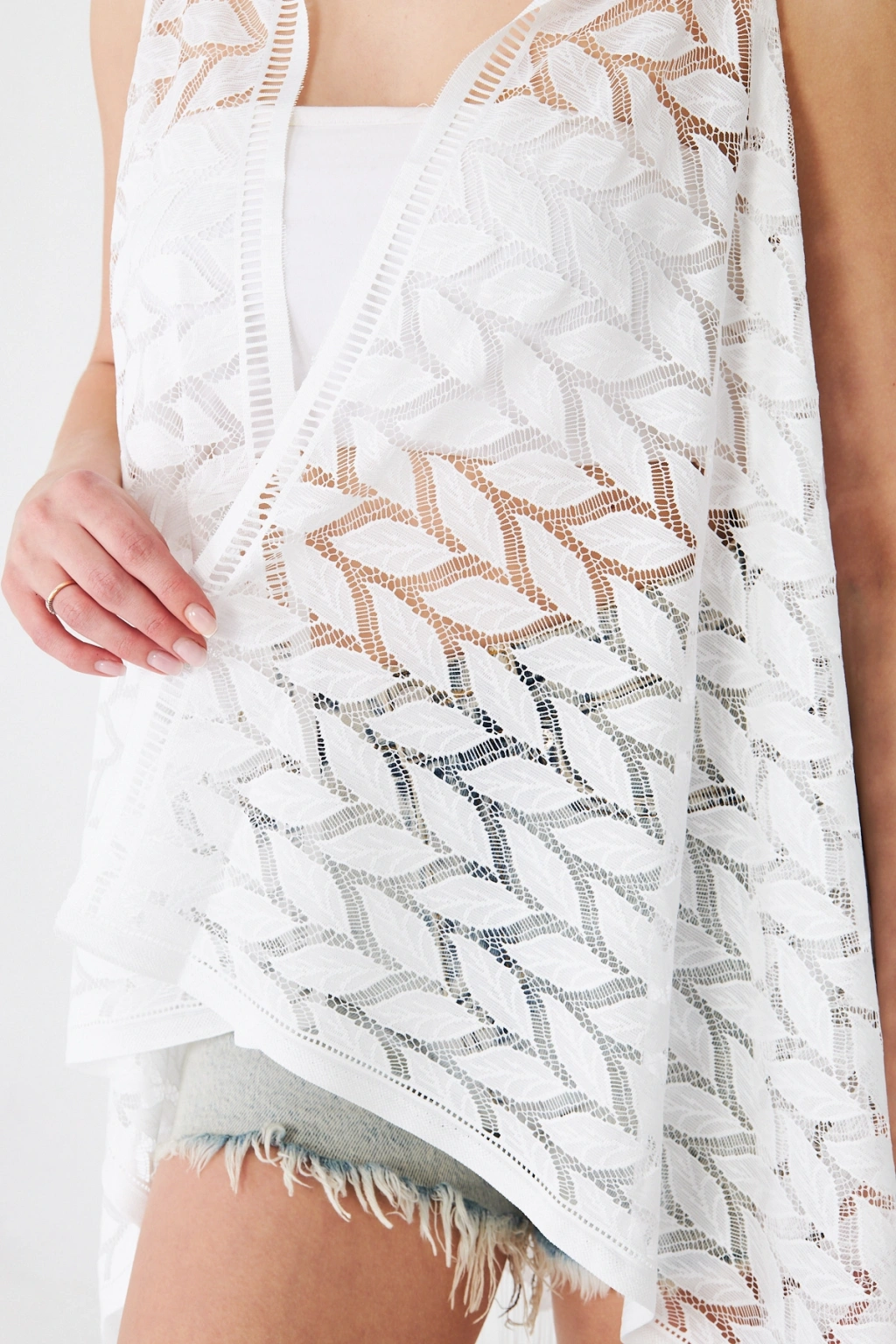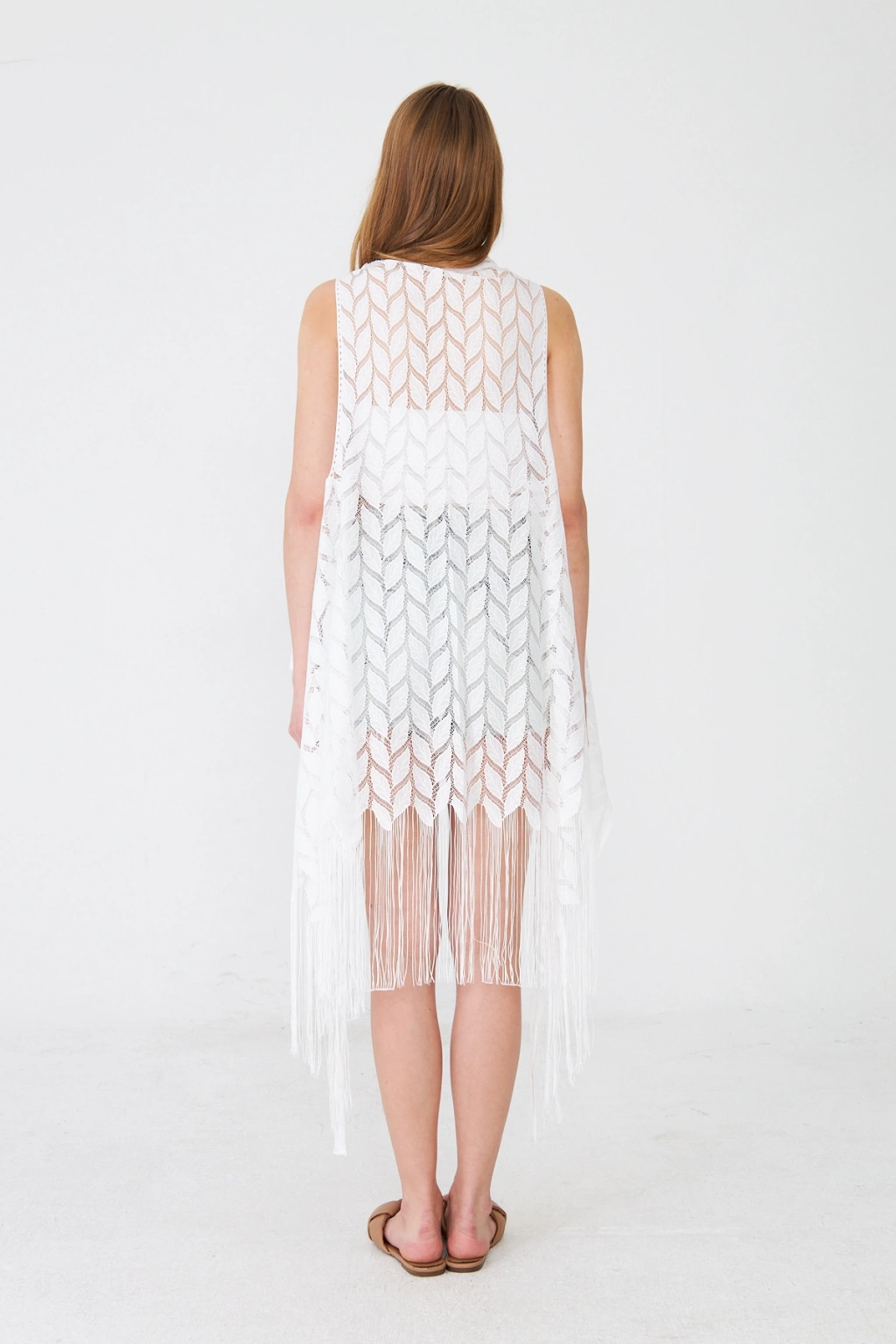 - Feminen tasarımıyla dikkat çeken bu uzun dantel yelek, yazlık günlerinizde şıklığınızı tamamlar.; - Püskül detayları ile hareket kazandırılmış, göz alıcı bir görünüm sunar.; - Sexy ve modern siluetiyle feminen çizgilerinizi ön plana çıkarır.; - Nakışlı ve işlemeli deseniyle zenginleştirilmiş, estetik bir dokunuş sağlar.; - Astarsız yapısı sayesinde hafif ve rahat bir kullanım sunar.; - İnce dokusuyla yaz aylarında serinlik ve konfor sağlar.; - Kolsuz tasarımı ile omuzlarınızı serbest bırakarak rahat hareket etme imkanı verir.; - Günlük kullanım için ideal olan bu yelek, her ortama uyum sağlar.; - Şal yakası ile zarif bir görünüm kazandırırken, düz kesimiyle sade ve şık bir duruş sergiler.; - Kemersiz yapısıyla minimalist bir stil oluştururken, cepsiz tasarımıyla sadeleşir.; - Broderie ek özellikli dantel dokusu, detaylara gösterilen özeni vurgular.; - Basic koleksiyonun bir parçası olarak zamansız bir parça sunar.; - Tüm sezonlar için uygun olan bu yelek, gardırobunuzun vazgeçilmezi olacak.; - Türk menşeli olmasıyla yerel üretim desteklenmiş olur.;