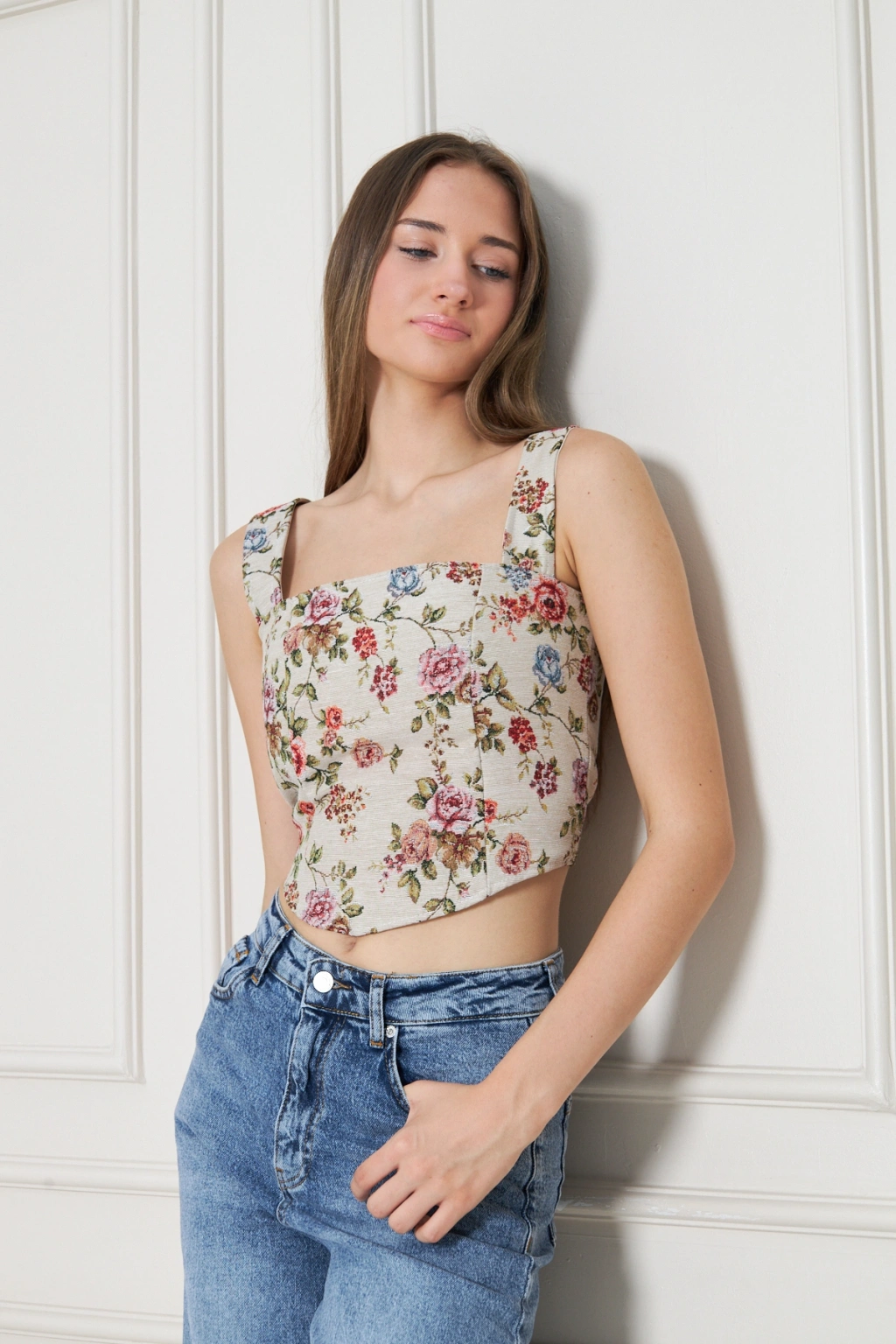 - Vintage esintili tasarımıyla dikkat çeken bu crop bluz, şıklığı ve rahatlığı bir arada sunar.; - Kalın askılı yapısı sayesinde yaz aylarında serin tutarken, kollarınızda zarif bir görünüm sağlar.; - Dokulu kumaşı ile hem günlük kullanım hem de özel günlerde tercih edebileceğiniz çok yönlülükte bir parça olarak öne çıkar.; - Jakar panelli detayları ile göz alıcı bir dokunuş katarken, kemer olmadan da kolayca kombinlenebilir.; - Astarlı yapısı sayesinde konforlu bir deneyim yaşatırken, tüm sezonlarda rahatlıkla kullanılabilir.; - Jakar panelleriyle zenginleştirilmiş tasarım, modern ve sofistike bir stil vurgular.; - 45 derecede yıkama imkanı sunarak pratik bakım avantajını beraberinde getirir; böylece uzun süre ilk günkü gibi kalmasını sağlar.; - Cepsiz oluşu minimalist çizgisini korurken, baskısız deseniyle sadelikten yana olanların beğenisine hitap eder.; - Kutusuz ambalaj seçeneğiyle çevre dostu bir tercih yapmış olursunuz; aynı zamanda ekstra maliyetten tasarruf etmiş olursunuz.; - Sexy persona'sıyla genç ruhları yansıtan bu crop bluz, her ortamda fark yaratmanız için idealdir.; - Fermuarlı kapama şekliyle pratik giyip çıkarma imkanına sahip olursunuz; ayrıca fermuar detayı estetik bir tamamlayıcıdır.; - Sürdürülebilirlik ilkesine uygun üretim süreciyle doğaya duyarlı bir seçim yapmış olursunuz.; - %90 pamuk içeriği sayesinde nefes alabilen yapıda konforlu bir kullanım sunar; cildinizle dosttur.; - Kırışmaya dayanıklı özelliği ile sık yıkamalarda bile formunu koruyarak zamandan tasarruf etmenizi sağlar.; - Orta kalınlıkta dokuma kumaşı mevsim geçişlerinde ideal konforu sağlarken, crop kesimiyle trendleri takip ederken rahatlık sunar.; - Türkiye'de üretilmiş olup yerel işçilikten gelen değeri temsil ederken aynı zamanda kaliteli malzemelerle uzun süreli kullanım vaad eder.;