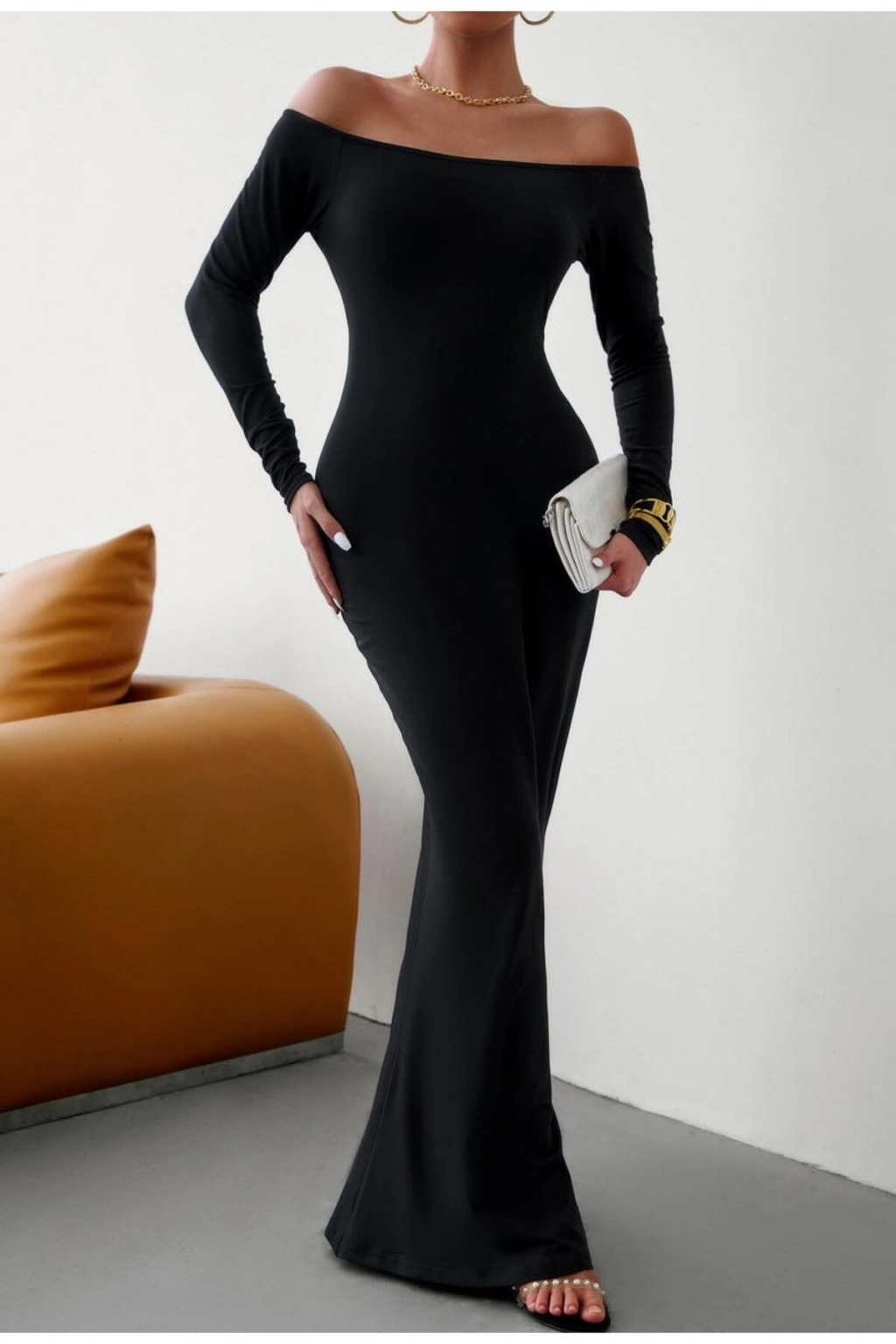 • Model: Omuz açık, balık form, vücuda oturan uzun elbise.